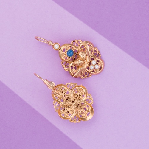 Tutte le creazioni vengono impreziosite da una doratora effetto antico che dona brillantezza e lucentezza ad ogni gioiello vintage.