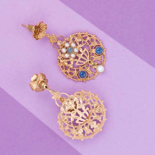 Tutte le creazioni vengono impreziosite da una doratora effetto antico che dona brillantezza e lucentezza ad ogni gioiello vintage.