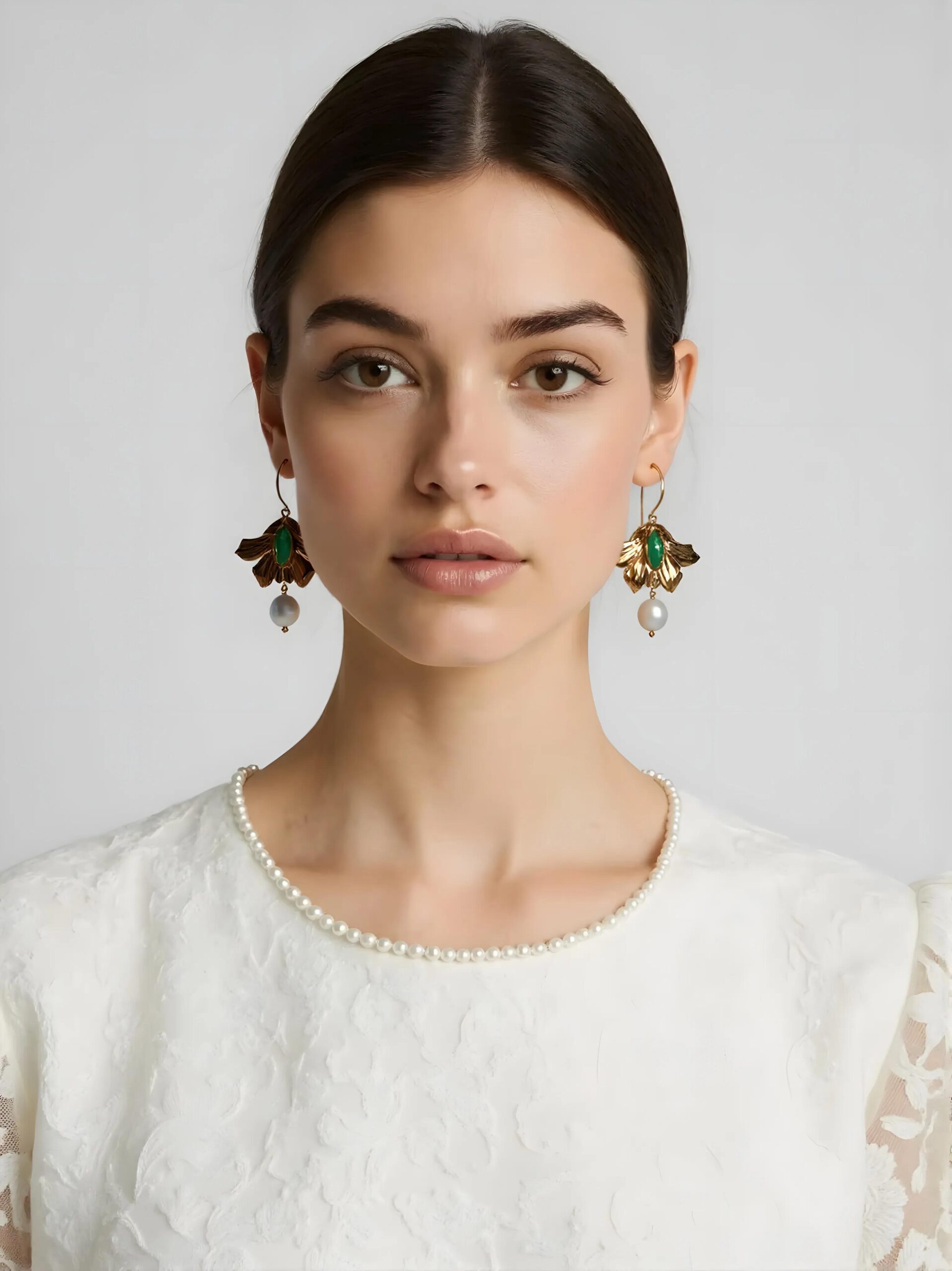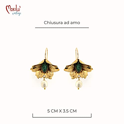 Orecchini a forma di calla con Pietra Verde Occhio di Tigre e Perle – Promozione